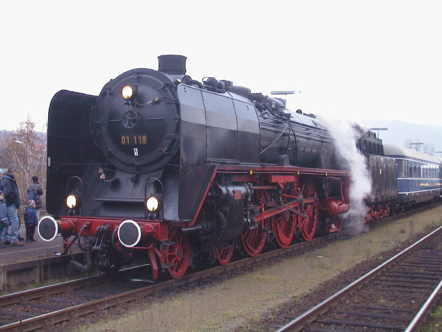 Die beiden rechten Fotos zeigen 01 118 in voller Fahrt in
