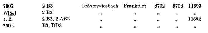 Anfang der 70er Jahre bestanden die meisten Nahverkehrzüge, sofern sie nicht aus Schienenbus-Garnituren gebildet waren, aus Umbau-Dreiachsern der Gattungen AB3yg, B3yg und BD3yg. Diese Züge, die teilweise eine Länge von 10 Wagen erreichten, führten auch Halbgepäck- und 1./2.Klasse-Wagen mit sich. Die 10-Wagen-Züge, die überwiegend nach Frankfurt durchliefen, sogar zwei AB-Dreiachser. Der später in den Tabellen der DB-Nebenbahnen zu findende Vermerk "Alle Züge nur 2.Klasse" hatte noch keine Gültigkeit. Auch auf unserer Strecke konnte man damals also noch "erstklassig" reisen. |