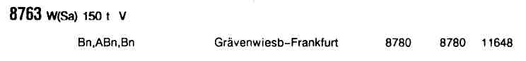 Erwähnenswert waren auch N 8762/N8771 die im Durchlauf von/nach Friedberg aus einer Wendezuggarnitur bestanden, anfangs noch mit einem sog. "Hasenkastensteuerwagen" (BDnf 738/739), später mit den Typen ohne Übergang (BDnf 740). Teilweise liefen auch noch wendezugfähige Mitteleinstiegswagen mit, dabei auch solche, die selbst einmal Steuerwagen waren (Bylb 422). Dieser Umlauf war im Sommerfahrplan 1985 übrigens der einzige mit 212 bespannte, alle anderen lokbespannten Züge wurden von 211 oder 216 gezogen. |